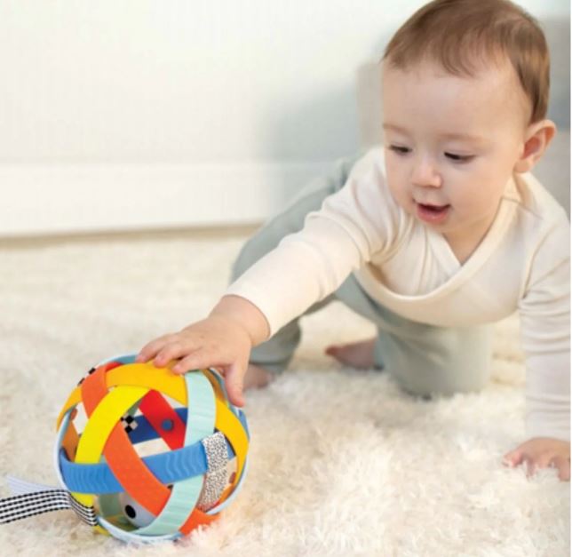 A sensory experience all rolled into a ball of flexible, squeezable, rattle-filled fun! The perfect first ball for baby.