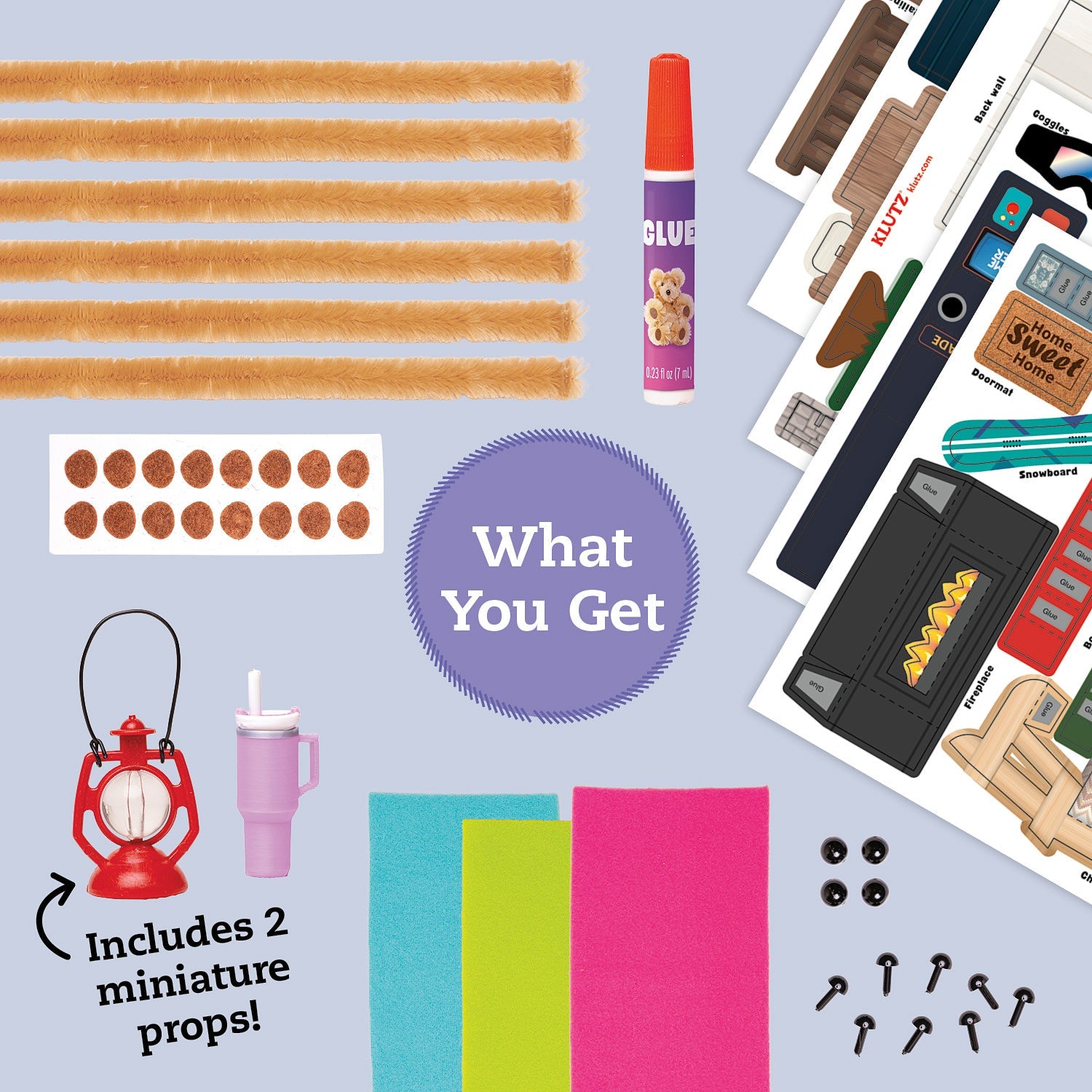 Tweens and teens will squeal over this adorable DIY miniature kit, building a tiny papercraft cabin with 4 fuzzy bears. Crystal clear instructions make it easy to twist extra-fluffy pipe cleaners into miniature bears, complete with beady eyes, noses, and soft felt paw pads. Next, dress them up with fashion-forward fleece scarves. Finally, put it all together with furnishings in a cabin scene, complete with miniature books, a tiny faux fire pit, and much more.