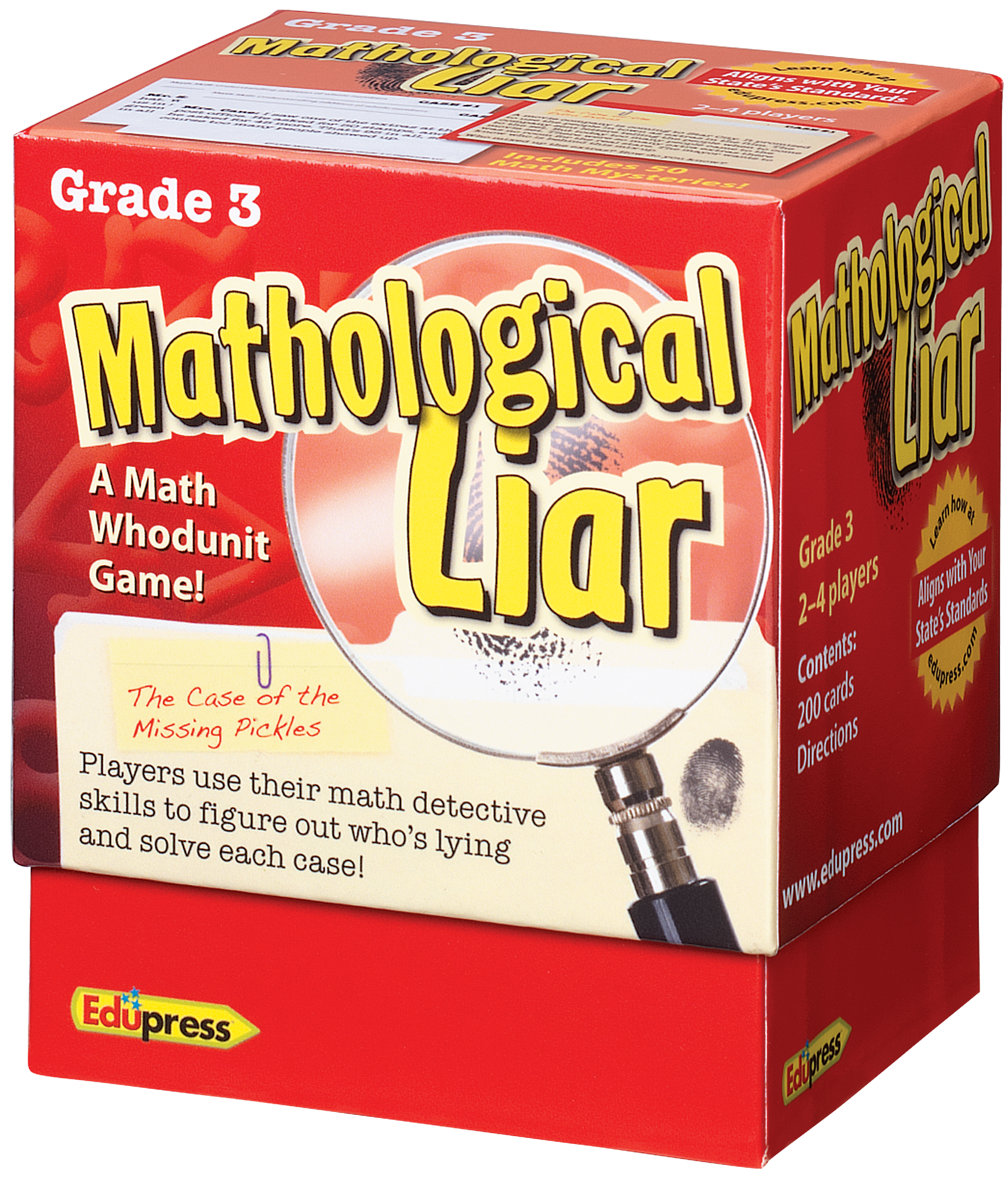 Students will love becoming math detectives! Players earn points for solving math mysteries in this entertaining and educational game. In each round, players read about a crime committed and each player receives a suspect’s alibi. Players must determine whether the math in their suspect’s alibi is correct or not. If the math is correct, the suspect is innocent, if the math is incorrect, the suspect is guilty of the crime. Each game requires players to use multiple grade-level math skills. Includes 40 math mysteries. The game can be played with 2–4 players and includes ideas for turning the game into a quick-and-easy math center. Set of 200 cards and directions. Aligned with Common Core and State Standards. Supports requirements of Title I and other federally-funded programs.