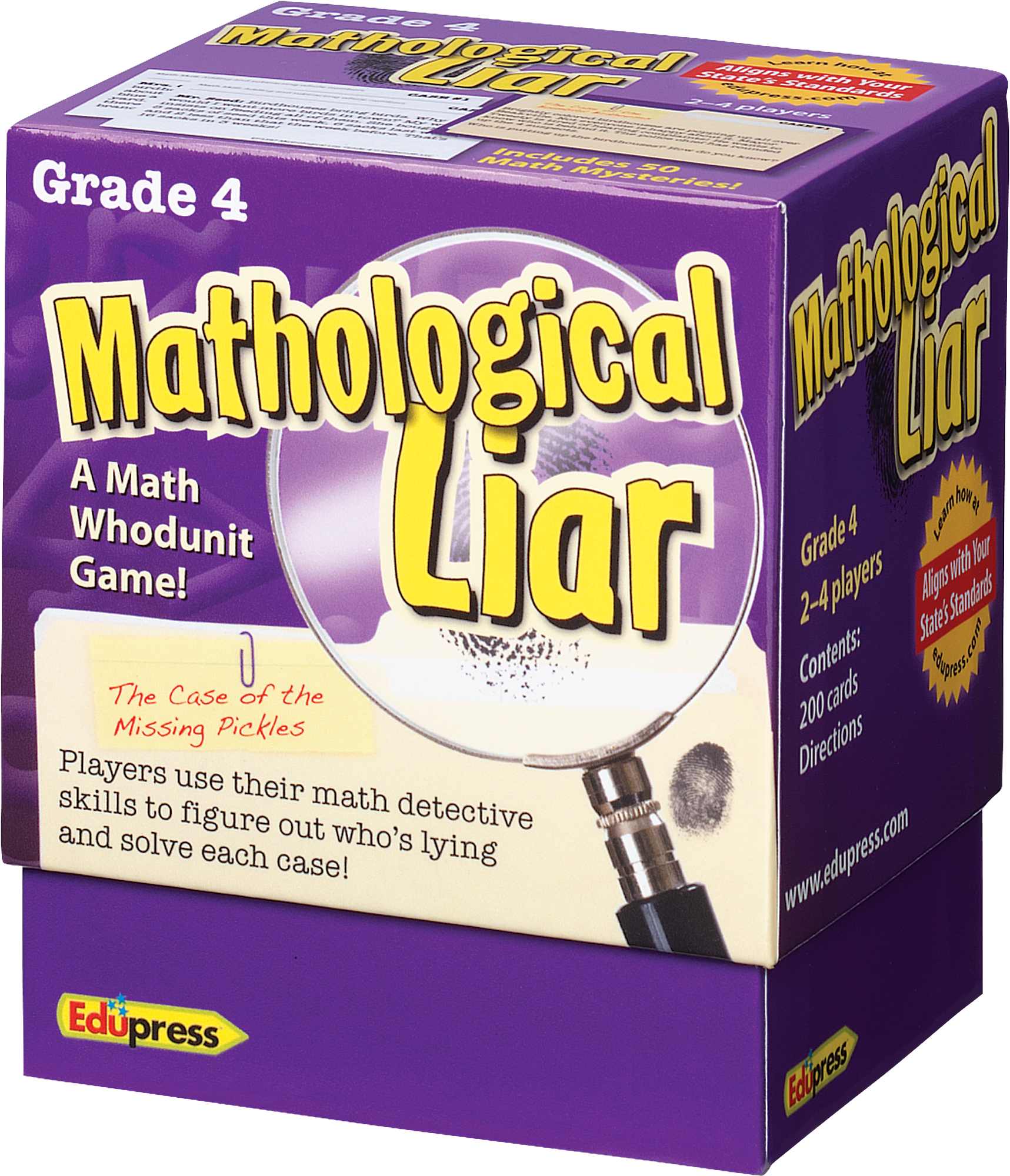 Students will love becoming math detectives! Players earn points for solving math mysteries in this entertaining and educational game. In each round, players read about a crime committed and each player receives a suspect’s alibi. Players must determine whether the math in their suspect’s alibi is correct or not. If the math is correct, the suspect is innocent, if the math is incorrect, the suspect is guilty of the crime. Each game requires players to use multiple grade-level math skills. Includes 40 math mysteries. The game can be played with 2–4 players and includes ideas for turning the game into a quick-and-easy math center. Set of 200 cards and directions. Aligned with Common Core and State Standards. Supports requirements of Title I and other federally-funded programs.