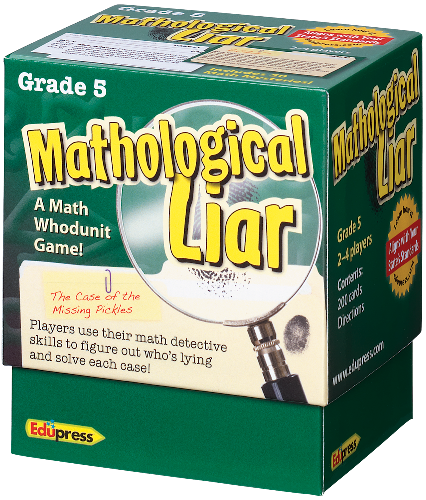 Students will love becoming math detectives! Players earn points for solving math mysteries in this entertaining and educational game. In each round, players read about a crime committed and each player receives a suspect’s alibi. Players must determine whether the math in their suspect’s alibi is correct or not. If the math is correct, the suspect is innocent, if the math is incorrect, the suspect is guilty of the crime. Each game requires players to use multiple grade-level math skills. Includes 40 math mysteries. The game can be played with 2–4 players and includes ideas for turning the game into a quick-and-easy math center. Set of 200 cards and directions. Aligned with Common Core and State Standards. Supports requirements of Title I and other federally-funded programs.