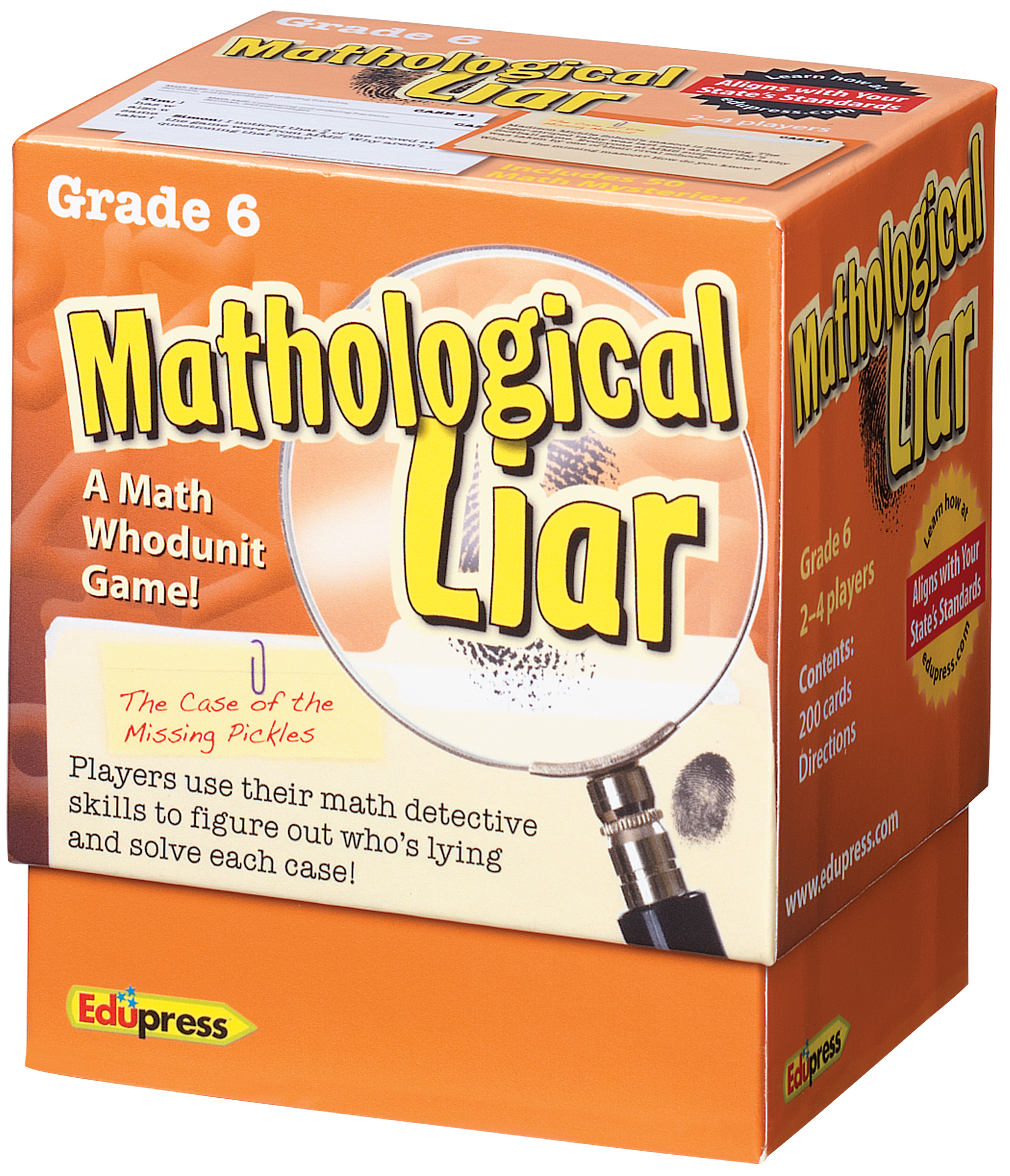 Students will love becoming math detectives! Players earn points for solving math mysteries in this entertaining and educational game. In each round, players read about a crime committed and each player receives a suspect’s alibi. Players must determine whether the math in their suspect’s alibi is correct or not. If the math is correct, the suspect is innocent, if the math is incorrect, the suspect is guilty of the crime. Each game requires players to use multiple grade-level math skills. Includes 40 math mysteries. The game can be played with 2–4 players and includes ideas for turning the game into a quick-and-easy math center. Set of 200 cards and directions. Aligned with Common Core and State Standards. Supports requirements of Title I and other federally-funded programs.