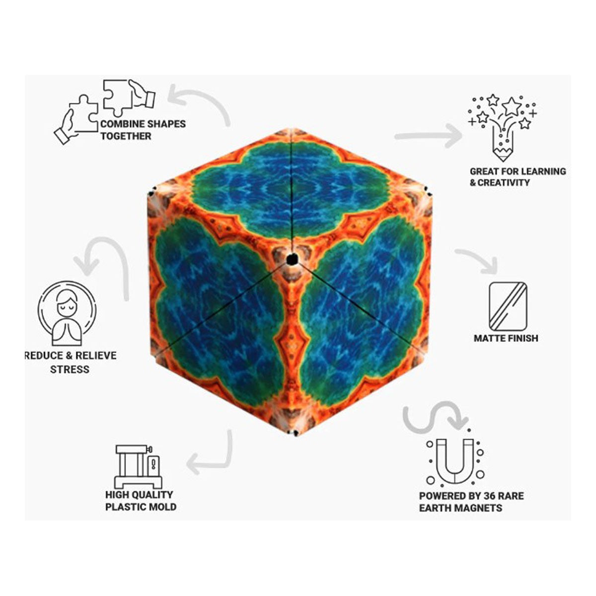Shashibo cubes are crafted with magnetic technology, allowing them to easily snap into different shapes. The cubes feature vibrant designs and patterns, adding an artistic touch to the interactive experience. The magnetic construction ensures durability and ease of manipulation.